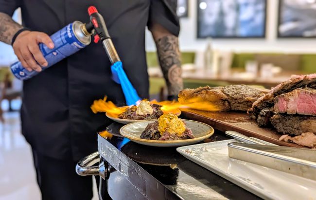 - Tomahawk with cafe de Paris butter, flambéed at the table - what a showstopper!