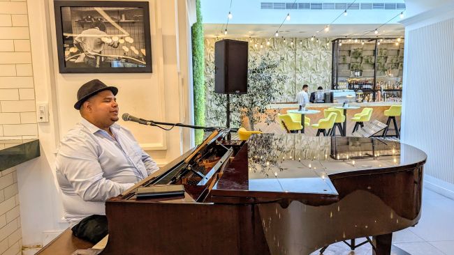 If you can’t imagine brunch without a side of live music, pull up a seat in Marco’s: resident musician Nathan is tinkling the ivories, playing guitar and belting out hit after hit throughout the afternoon.