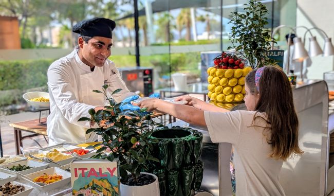 Nab a seat for family-friendly dining in CuiScene, or outside by the grass where the kids can let loose. There’s plenty the kids will love to eat - from pizza and pasta to streetfood burgers, tender meat, yummy shawarmas and endless sushi for all the junior sushi fiends - as well as a bottomless dessert buffet. Good luck prying them away from the chocolate fountain, endless scoops of icecream, churros and fresh crepes.