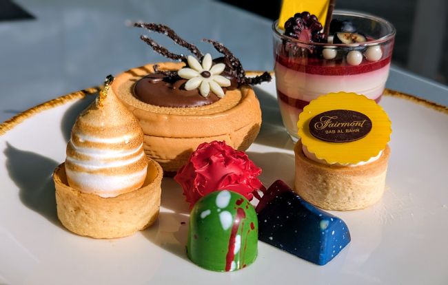 Work your way through an epic cheese and charcuterie selection, fresh salads and ceviche, before you hit the most impressive sushi selection from Cafe Sushi - we could fill up on this alone. Inside, streetfood and Mexican specialties await, alongside a delicious Spanish flatbread and generous seafood paella, fried buttermilk chicken and local specialties - the shish tawook is delish. Fairmont’s Indian selection is unsurprisingly excellent - the aromatic burst of spices from the top notch biryani topped with a whole leg of lamb speaks for itself. Head outdoors for the fresh grill - steak, prawns or lobster, anyone? - and a whole lamb on the spit.