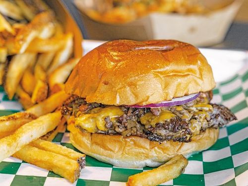 It’s the simplest of concepts, there’s no menu to scan or peruse, just a board on the wall: they offer just three proteins: beef, chicken and salmon. These are served in a skillet with the special Swiss Butter sauce and boarded up with baguette doorstops (white or brown), a mountain of thin-cut French fries (or a giant baked potato)and a generous serving of salad greens.