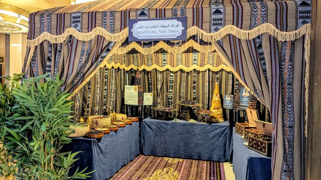 As well as a gorgeous Bedouin tent willed with dates, nuts and dried fruit, the back wall had an organics and local produce section which was a lovely touch - and if you have visitors in town, a nice way to show what the UAE has to offer. Local honey, camel cheese, tomatoes, pickles and salads all prepared from UAE-sourced ingredients - with signs explaining each display.