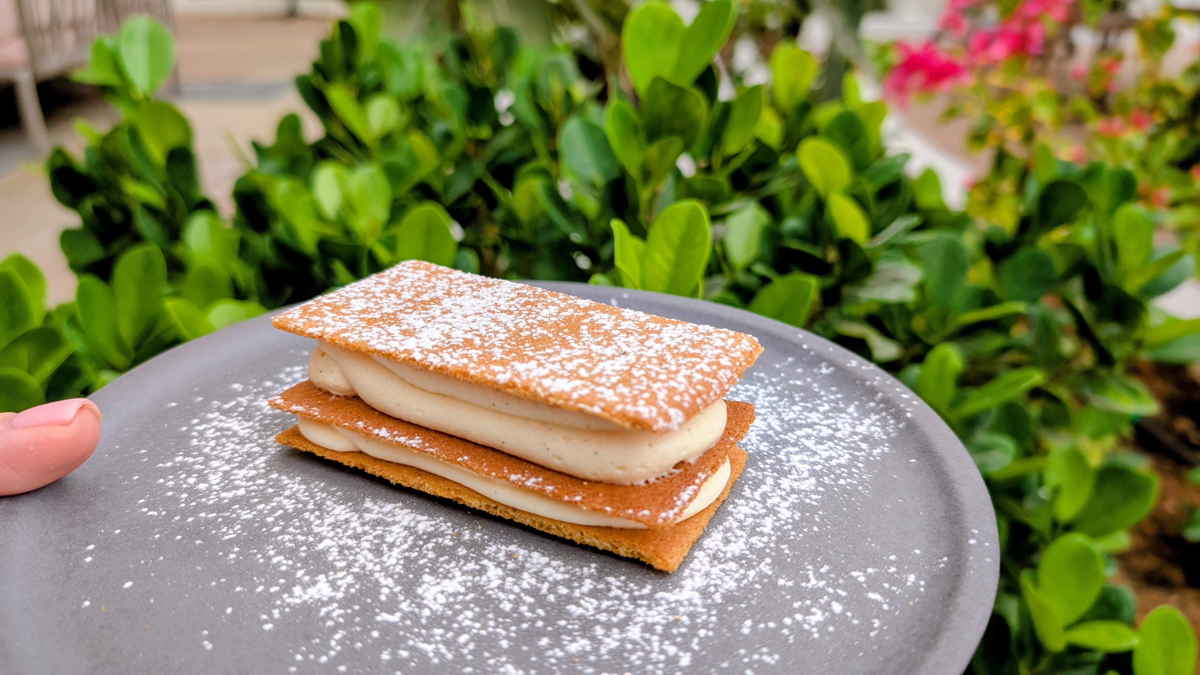 We wrap up this beautiful table service brunch with a feuilletine tropézienne - a name that sounds far more complicated than it is. In reality, it’s light, crispy honey layers with cream and a mixed berry center, and thankfully, just as easy to enjoy as it is hard to pronounce.