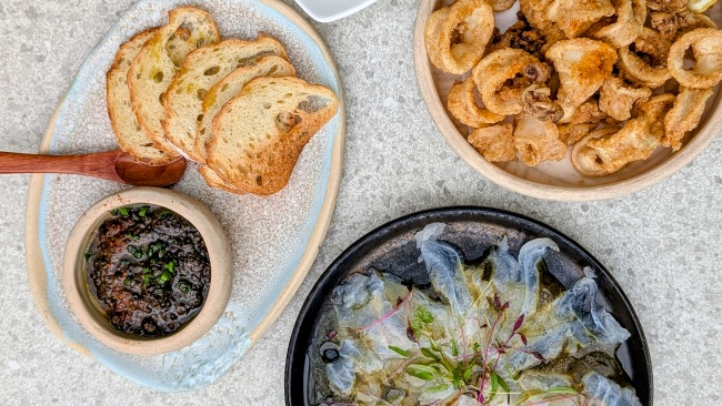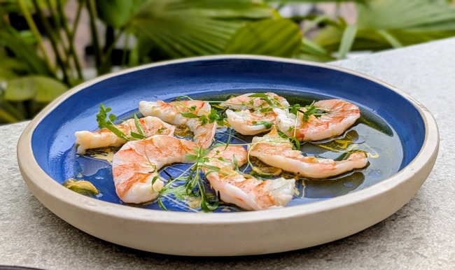 Where do I start! The crispy calamari and seabass carpaccio are excellent (a contender for one of the best raw fish dishes around). We love that you can order things you love again … enter: the warm prawns! What a dish!